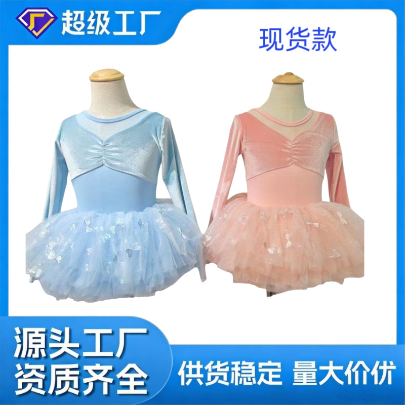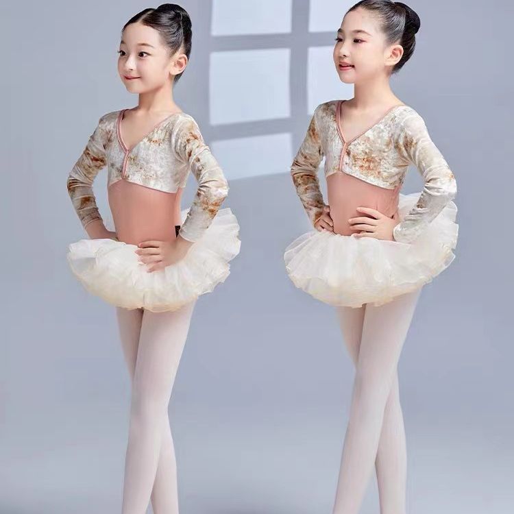 Pakaian Latihan Bentuk Balet Senam Tari Anak-anak Set Pakaian Profesional Satu Kumparan Lengan Panjang Beludru Model Baru Musim Gugur Wanita