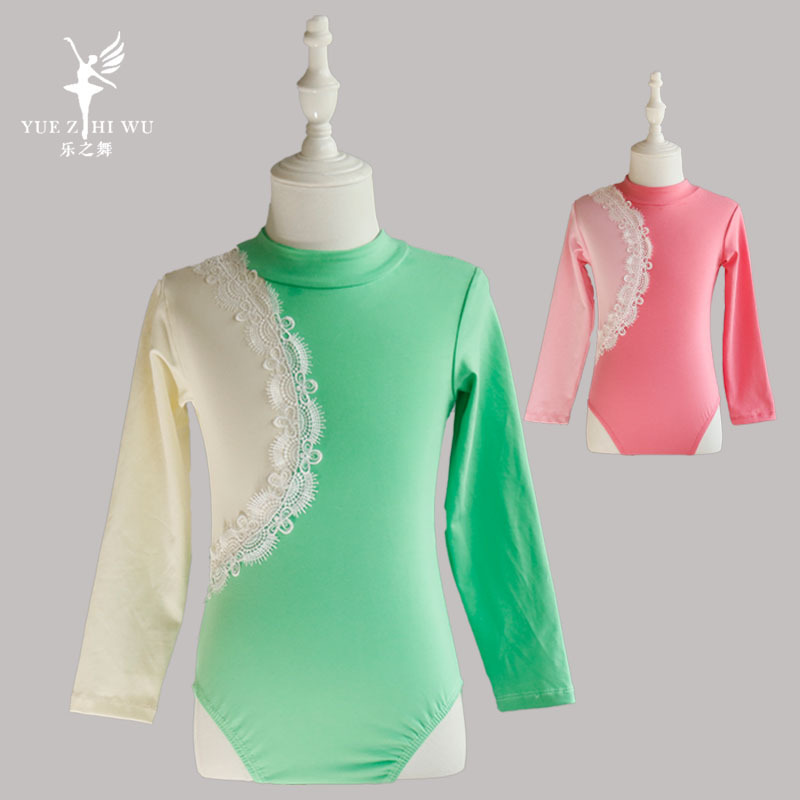 Pakaian dansa anak-anak, baju latihan wanita musim gugur dan musim dingin lengan panjang leher kura-kura pakaian tubuh balet kain kasa rok tari etnik Tiongkok selangkangan terbuka