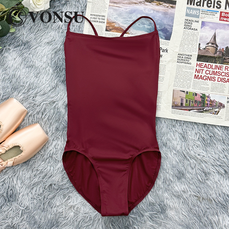 Fanshu Pakaian Latihan Balet Pakaian Olahraga Tari Pakaian Senam Senam Tari Wanita Dewasa Tali Punggung Terbuka Model Baru Warna Merah Anggur