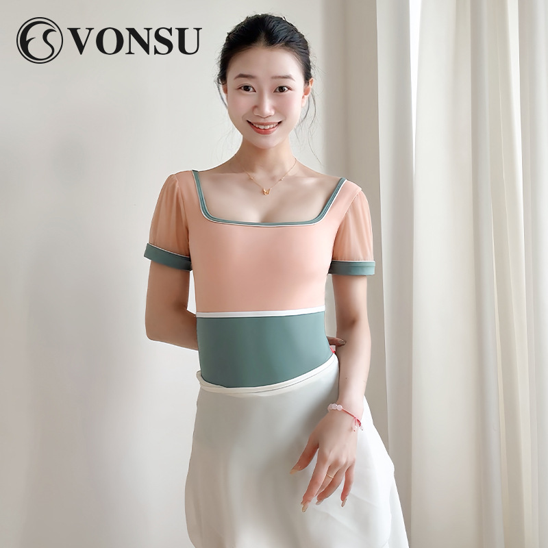 Ballechengren pakaian latihan tari lengan tiga perempat jaring pakaian senam tubuh wanita pakaian baru Direkomendasikan
