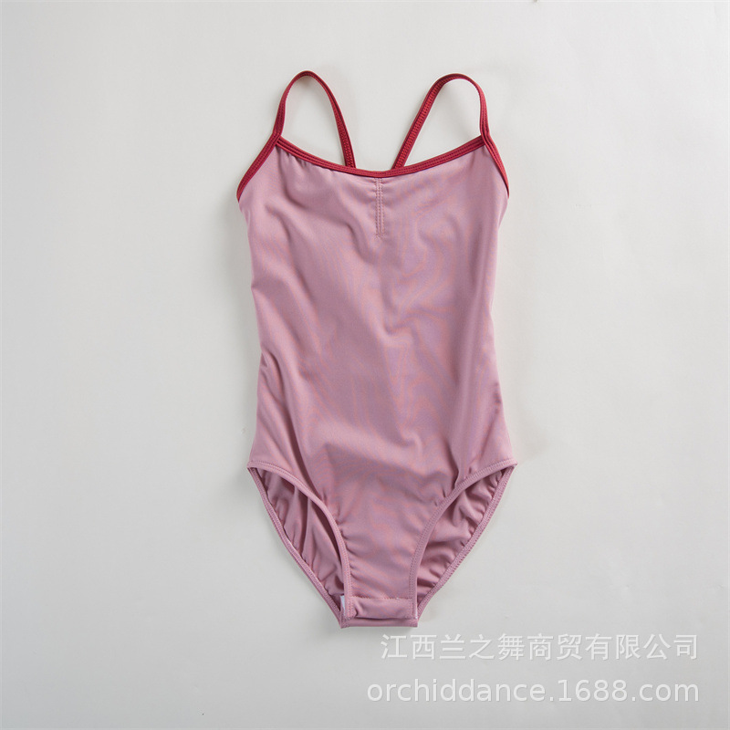 Pakaian latihan balet anak perempuan, baju terusan tali belakang V besar, pakaian badan dansa anak perempuan