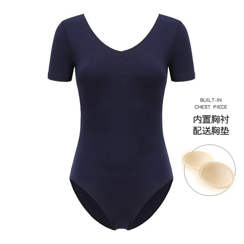 Pakaian latihan dansa satu potong, pakaian aerobik latihan dasar balet seni siswa lengan pendek sedang