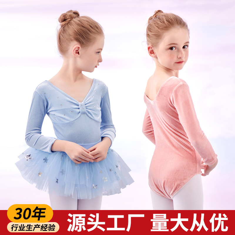 Pakaian dansa anak-anak pakaian latihan anak perempuan musim gugur dan musim dingin pakaian badan kelas beludru lengan panjang tari Cina setelan balet