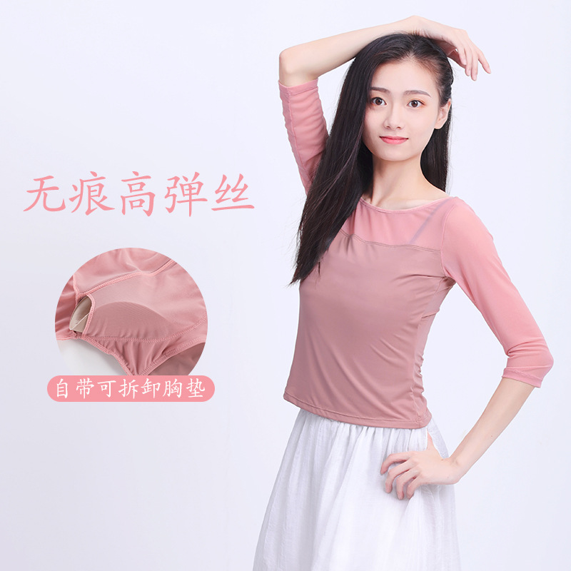 Pakaian dansa Latin wanita dewasa, pakaian latihan badan balet, pakaian senam tari modern lengan panjang atasan klasik China