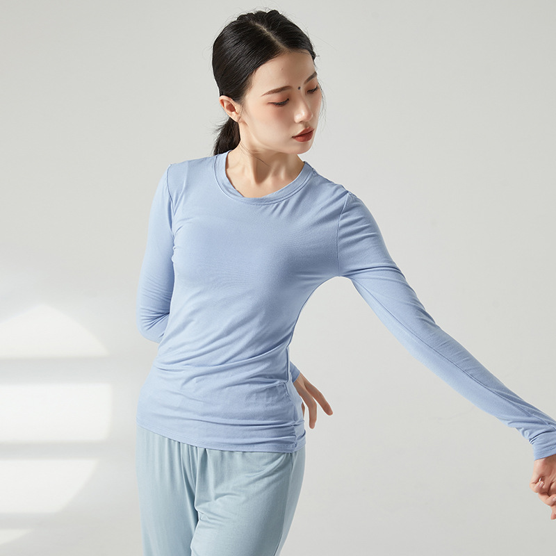Baju dansa modern ramping, baju latihan tari dasar baju yoga leher bulat lengan panjang