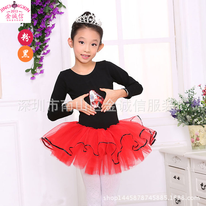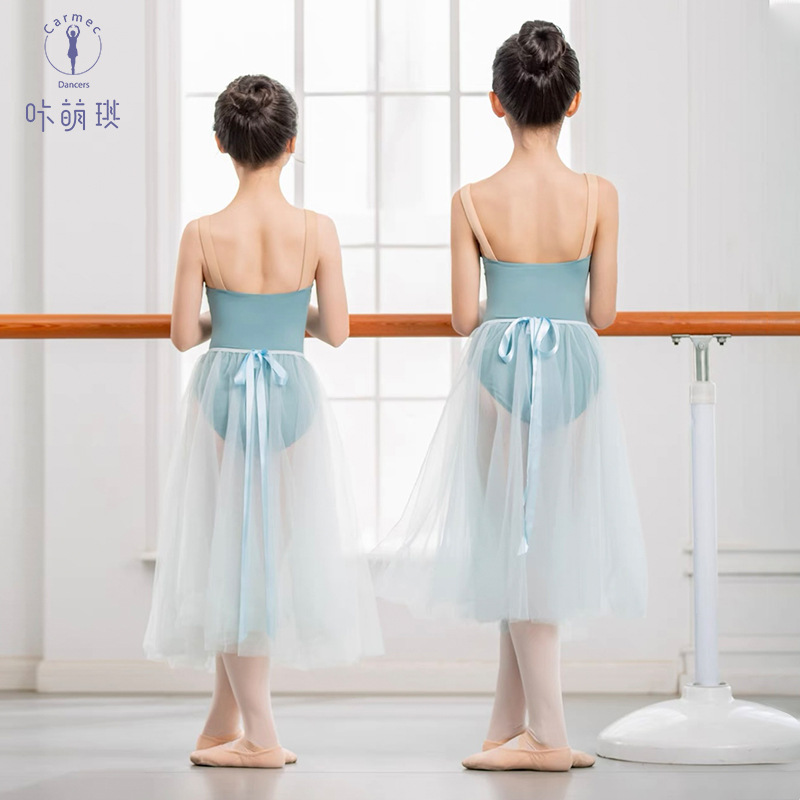 Pakaian dansa anak perempuan, rok balet lengan panjang untuk musim gugur dan musim dingin, pakaian latihan ujian Putri, rok kain kasa halus