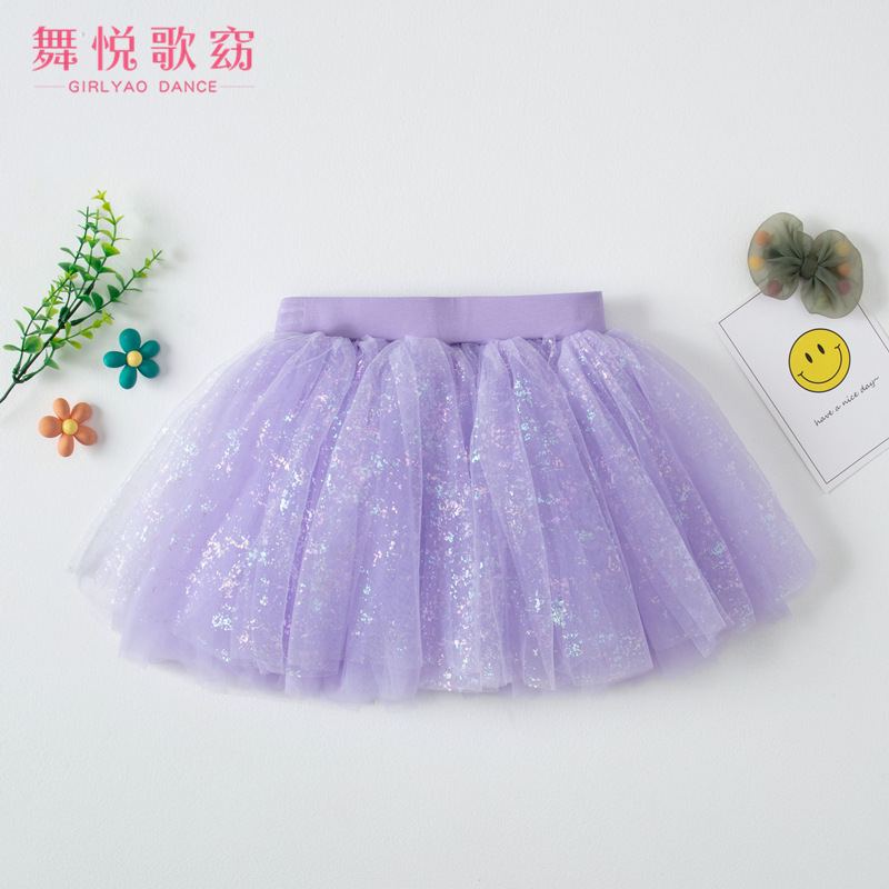 Gaun dansa anak-anak, rok balet musim panas dan musim gugur pakaian latihan penampilan anak perempuan, rok kasa menari putri mengembang