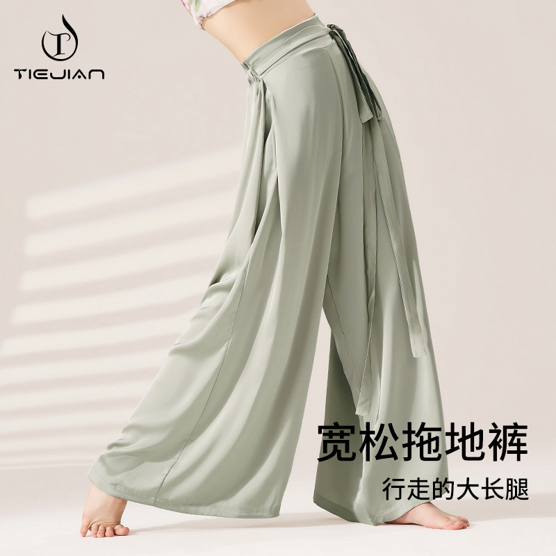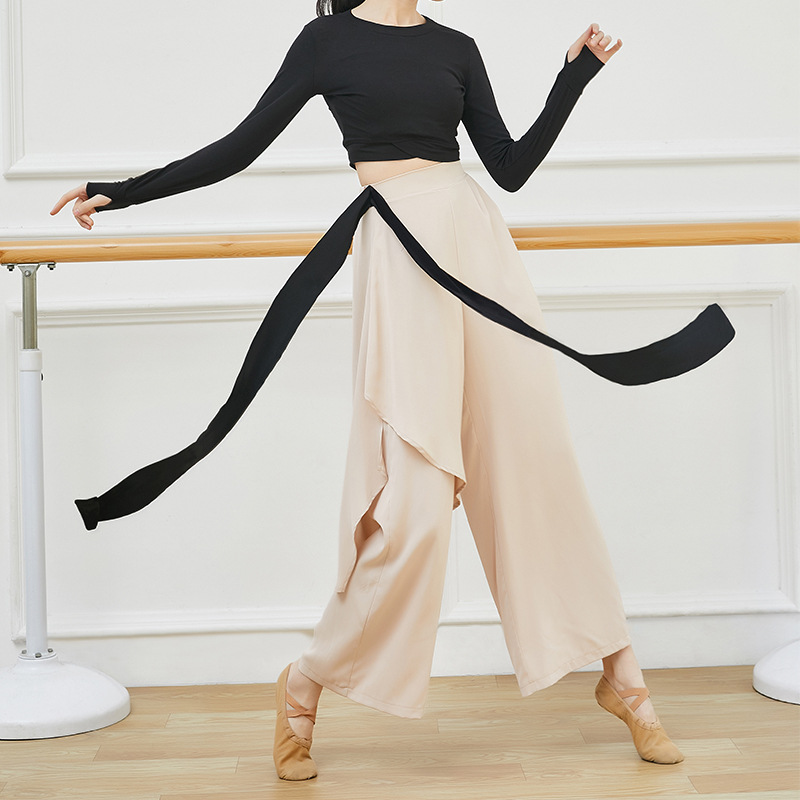 Celana tari klasik pakaian latihan wanita celana latihan tari etnik Tiongkok elegan sifon celana kaki lebar pakaian penampilan profesional
