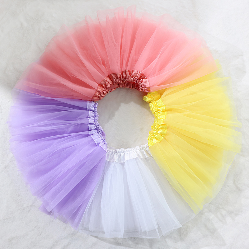 Rok kain kasa latihan dansa anak-anak, rok balet setengah panjang 4 lapisan kain kasa lembut pertunjukan taman kanak-kanak