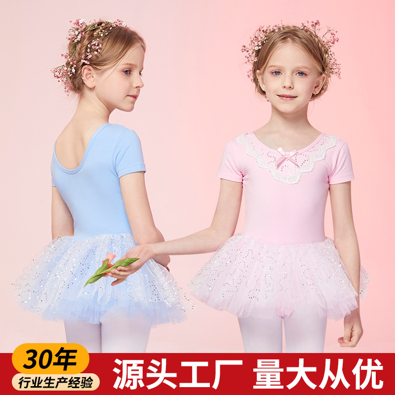 Baju dansa Anak perempuan lengan pendek, baju latihan dansa musim semi dan panas, rok balet anak perempuan, pakaian lengan pendek, eksklusif perdagangan luar negeri untuk pakaian anak-anak