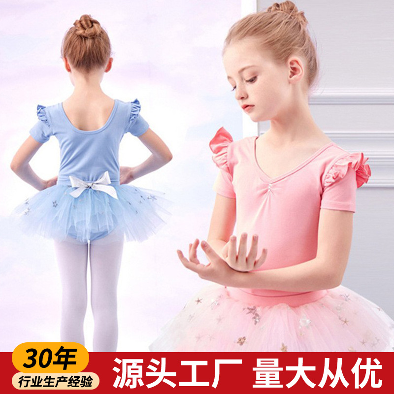 Baju dansa Anak perempuan lengan pendek, baju balet anak perempuan, baju latihan musim panas, baju dansa anak perempuan, baju putri putih salju