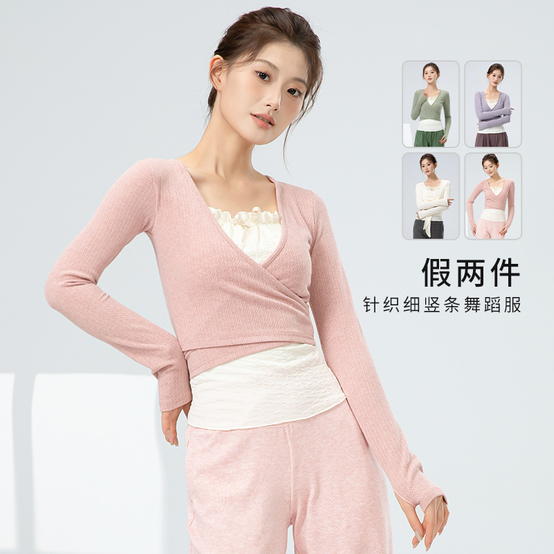 Pakaian Latihan Strip Vertikal Rajut Dua Potong Tari Modern Pakaian Tari Lengan Panjang Balet Klasik Model Baru Pakaian Tari Wanita