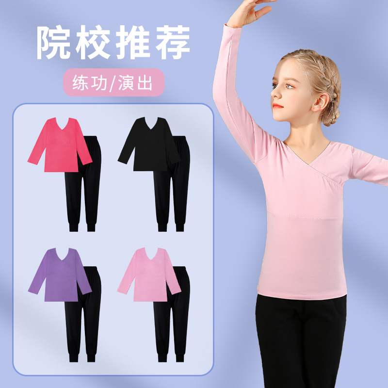 Pakaian dansa setelan anak-anak musim gugur dan musim dingin celana lobak perempuan lengan panjang pakaian menari setelan pakaian latihan pakaian tubuh grosir