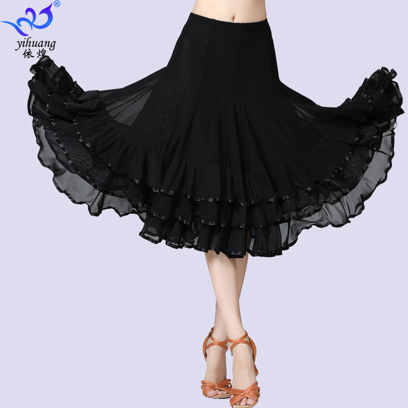 Rok tari modern, rok mesh melebar, kostum tari Latin, rok latihan tari ballroom, rok tari ballroom, rok tari