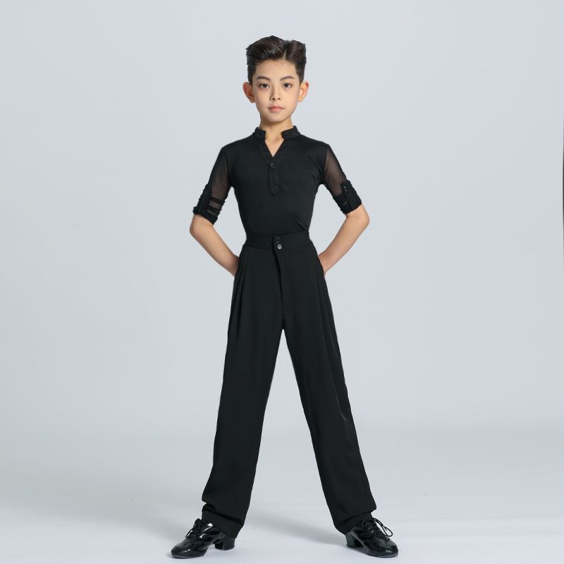 Pakaian Tari Latin untuk Anak Laki-laki Pakaian Latihan untuk Kompetisi Penilaian Profesional Anak Laki-laki Lengan Panjang Hitam
