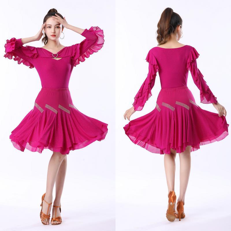 Pakaian Dansa Latin Pakaian Dansa Wanita Dewasa Model Baru Baju Manik Berenda Baju Menari Pakaian Latihan Bentuk Tubuh 3 Langkah Menari Standar Nasional