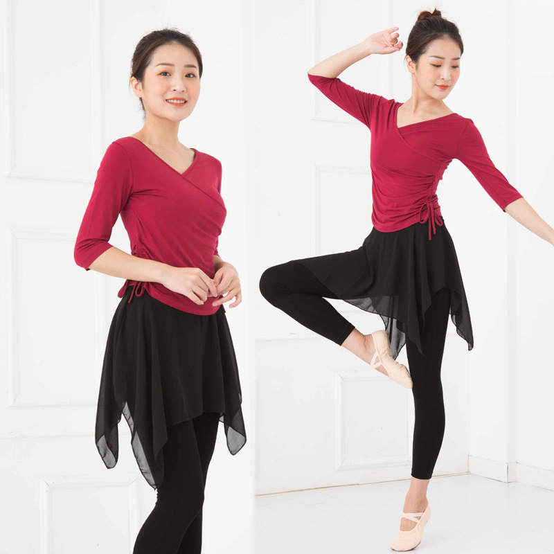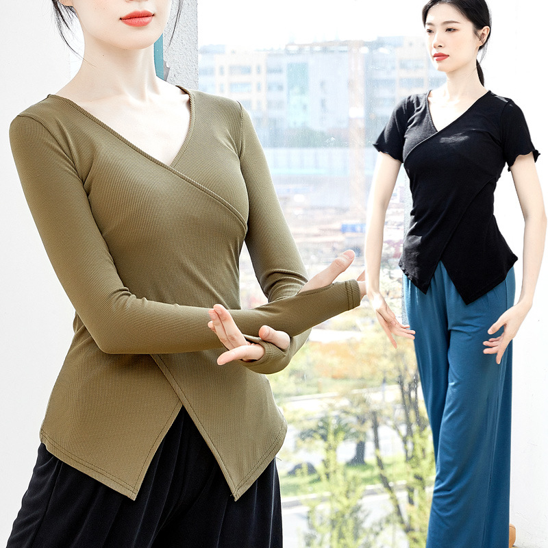 Grosir pakaian latihan dansa Atasan Wanita lengan panjang pakaian latihan Tubuh modal pakaian dansa yoga tari klasik persegi