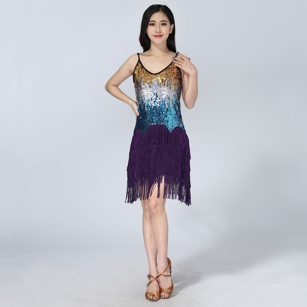 Rok dansa Latin, Gaun rok rumbai berpayet Eropa dan Amerika, pakaian pentas tari panggung