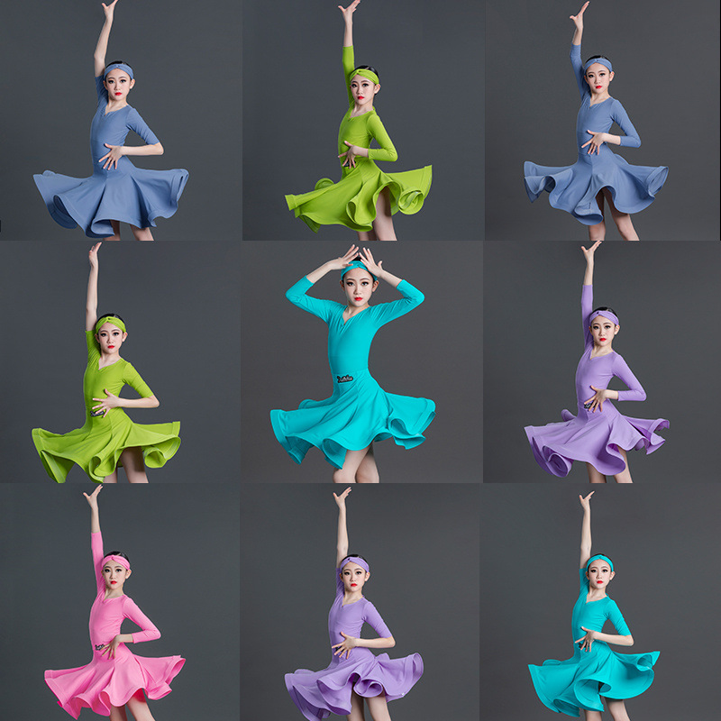 Pakaian dansa anak-anak, pakaian pertunjukan anak-anak, baju tari perut Latin, kostum kelompok tunggal, rok ayun besar