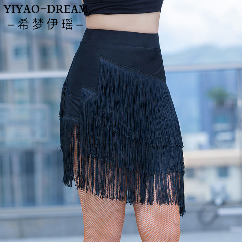 Rok dansa Latin wanita dewasa, rok tari tidak beraturan dengan rumbai miring rok latihan baru