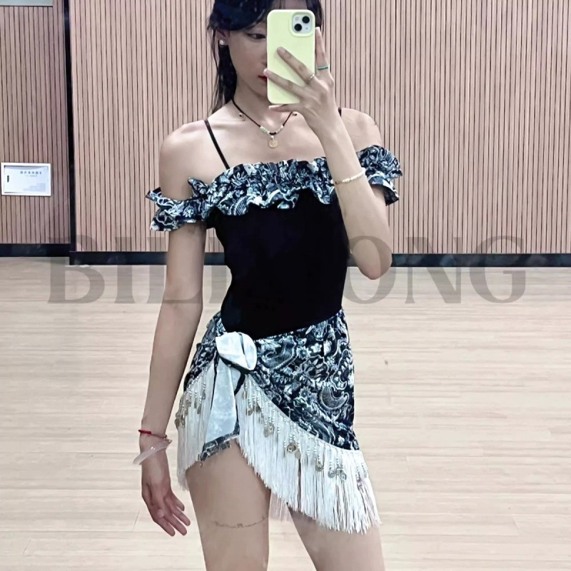 Baju dansa Latin dewasa wanita, pakaian latihan dansa rok motif macan tutul baru, pakaian dansa Latin seksi