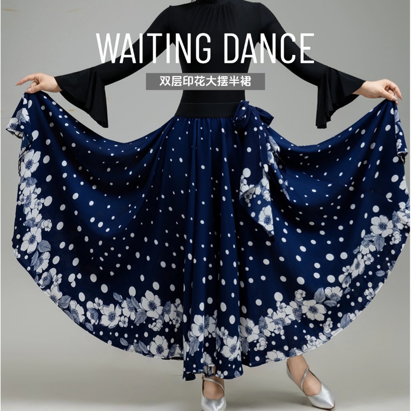Rok Tari Modern Rok Panjang Tari Persahabatan Tari Latin Standar Nasional Waltz Model Baru Wanita Rok Besar Pertunjukan Motif Bunga