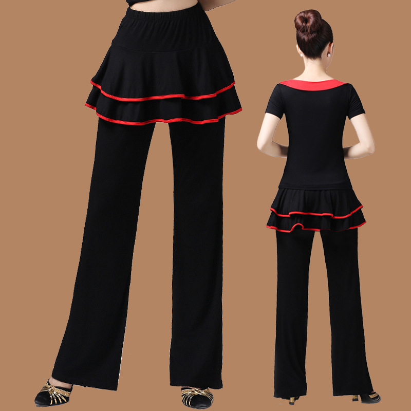 Celana dansa sifon untuk wanita, celana tari Modern, rok besar dua potong, pakaian yoga jazz Latin panjang setengah panjang