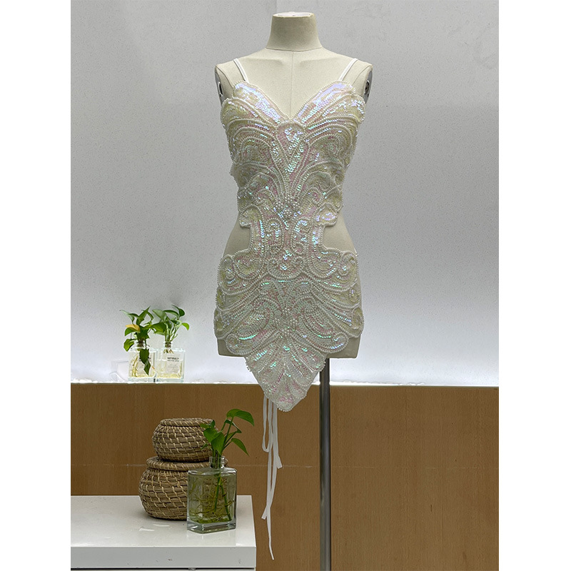 Gaun sling kelab malam seksi kecil jahitan rumbai payet gaun performa panggung Latin dewasa