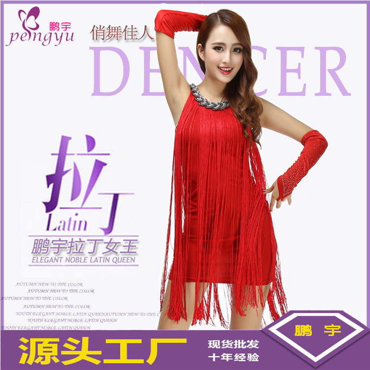 Tianchao pabrik Ji tari langsung gaun rumbai tari Latin gaun leher bulat baju dansa pakaian latihan untuk wanita