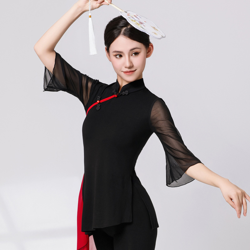 Baju Atasan Latihan Modern Bentuk Yoga Pakaian Tari Cina Pakaian Set Lengan Panjang Dewasa Pakaian Tari Klasik Musim Semi dan Musim Panas