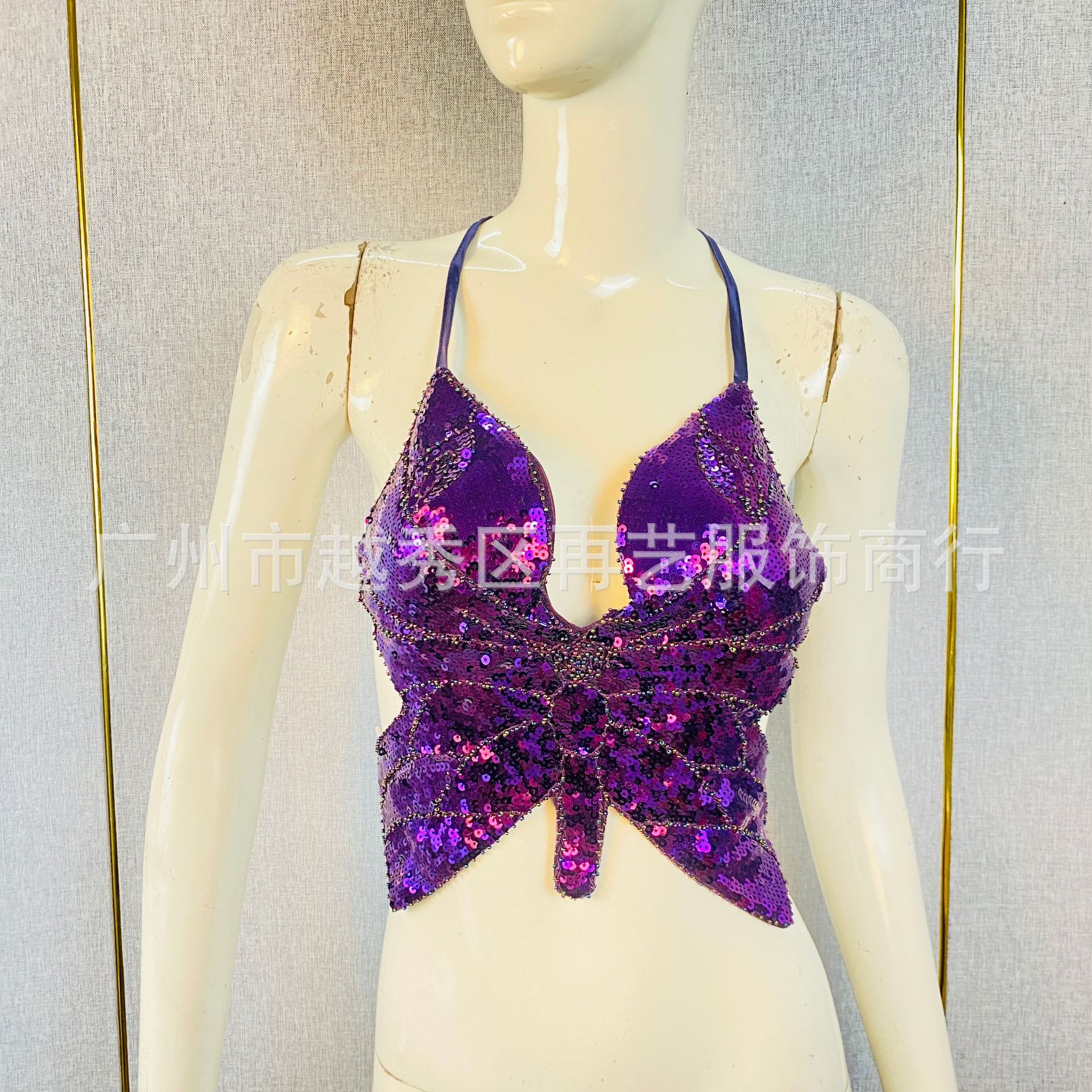 Bra atasan kupu-kupu berpayet performa panggung Eropa dan Amerika seksi tari perut kelab malam pakaian performa wanita tali Populer