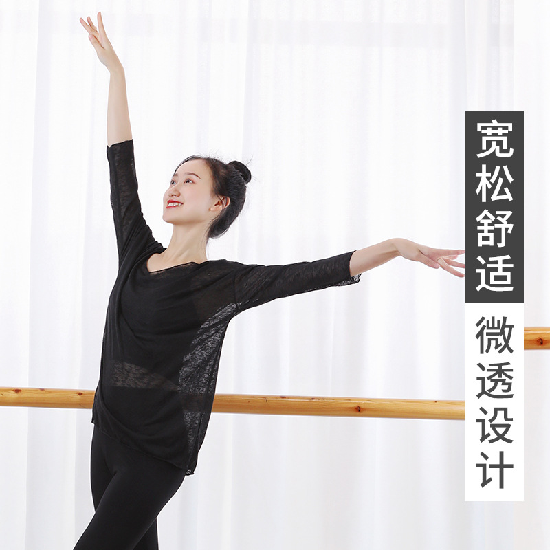 Jam tangan balet Yoga klasik, pakaian latihan tari modern dewasa, kaus jala wanita atasan performa, jam tangan pas badan balet Yoga klasik