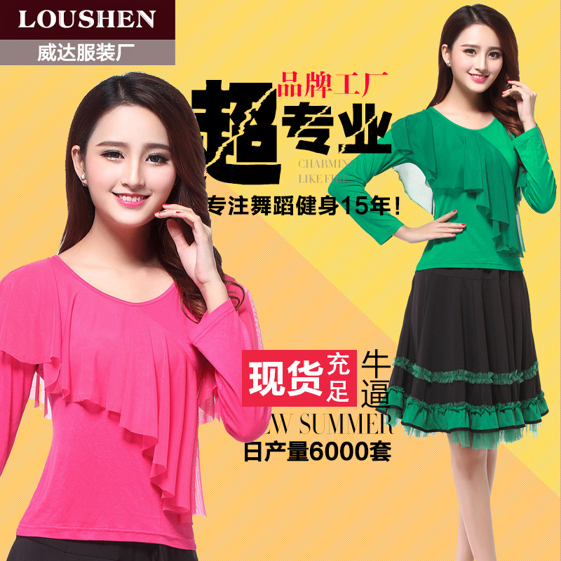 Pakaian latihan dansa klasik wanita, model slim fit olahraga ukuran plus pakaian aerobik dansa persegi