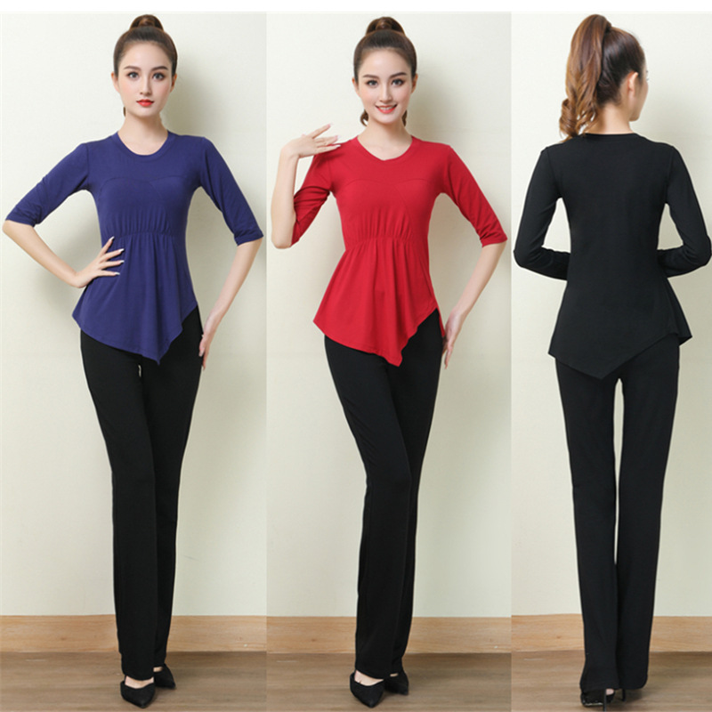 Pakaian latihan dansa wanita, atasan modal terpisah slim-fit etnik tidak beraturan kotak modern klasik untuk dewasa