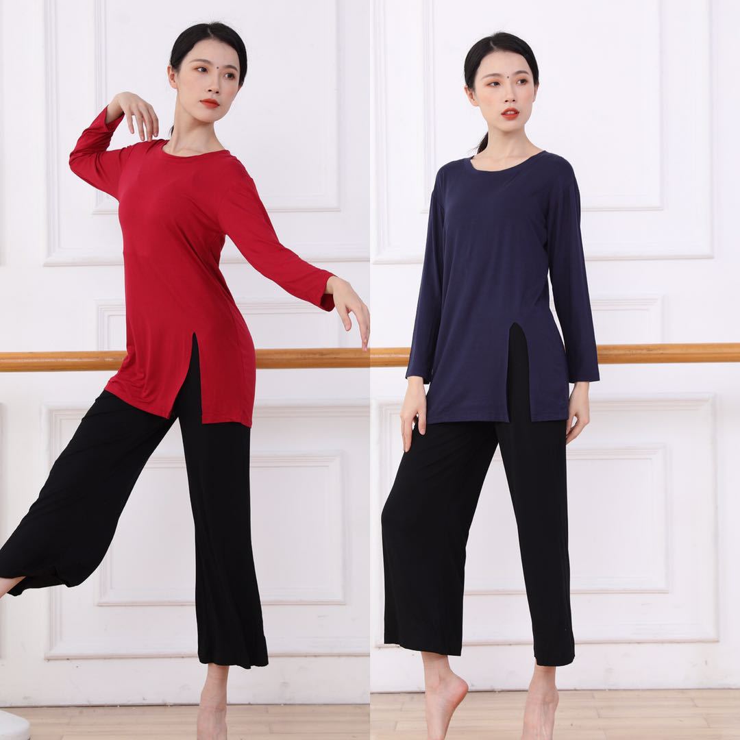 Baju dansa Modern wanita, baju modal terpisah, pakaian dansa persegi panjang klasik, baju latihan dansa Modern longgar