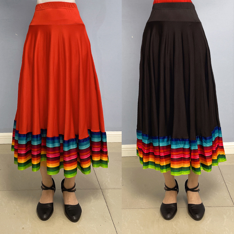 Pakaian Latihan Tari Lapangan Gaun Besar Rok Setengah Badan Pertunjukan Tari Nasional Gaun Panjang Sedang Pelangi Pakaian Pertunjukan Tari Tiongkok