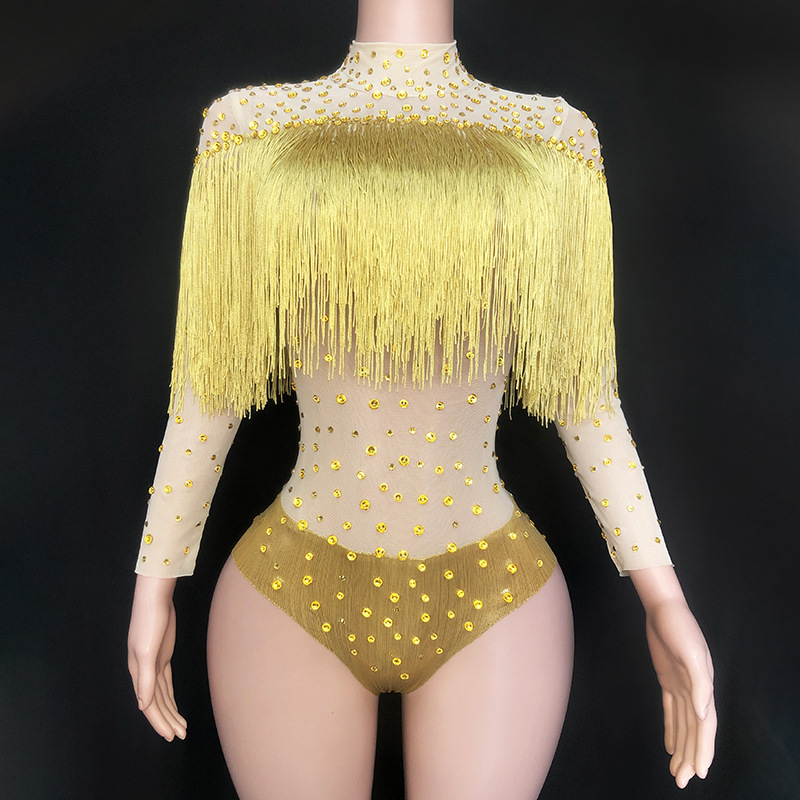 Gaun pesta makan malam elegan, jumpsuit berlian terang rumbai Halter, pakaian pertunjukan tari Latin, gaun pesta makan malam elegan untuk latihan kompetisi dansa