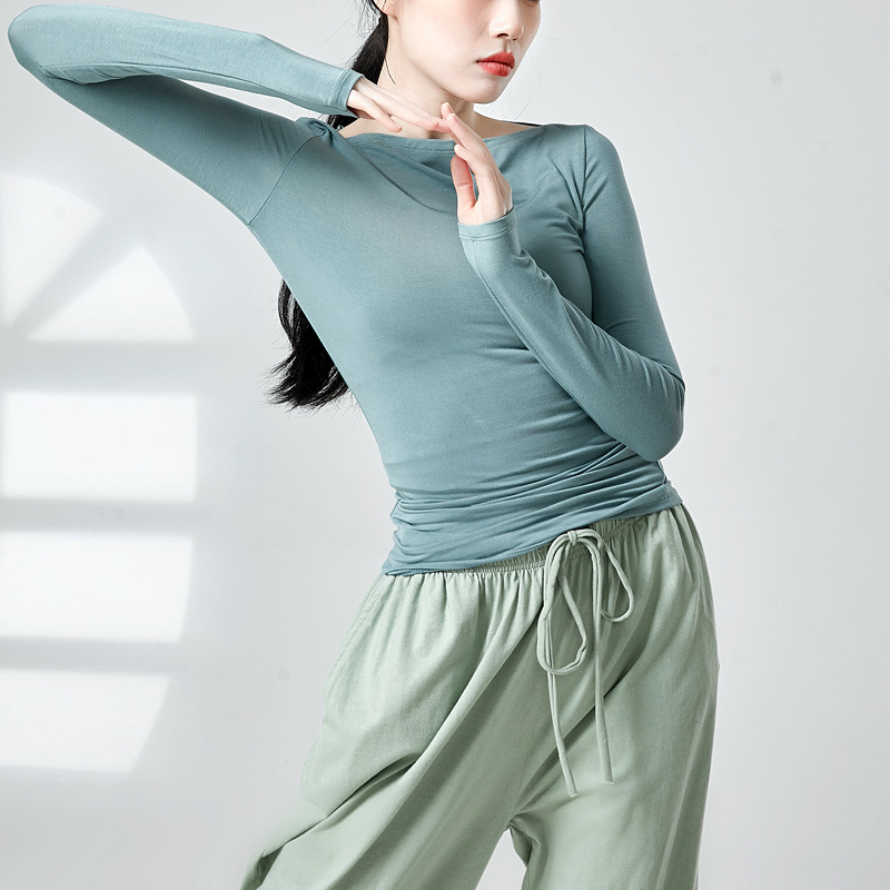 Pakaian badan tari klasik atasan yoga lengan panjang leher rendah seni ujian pakaian Badan Musim Semi modern latihan tari pakaian untuk wanita