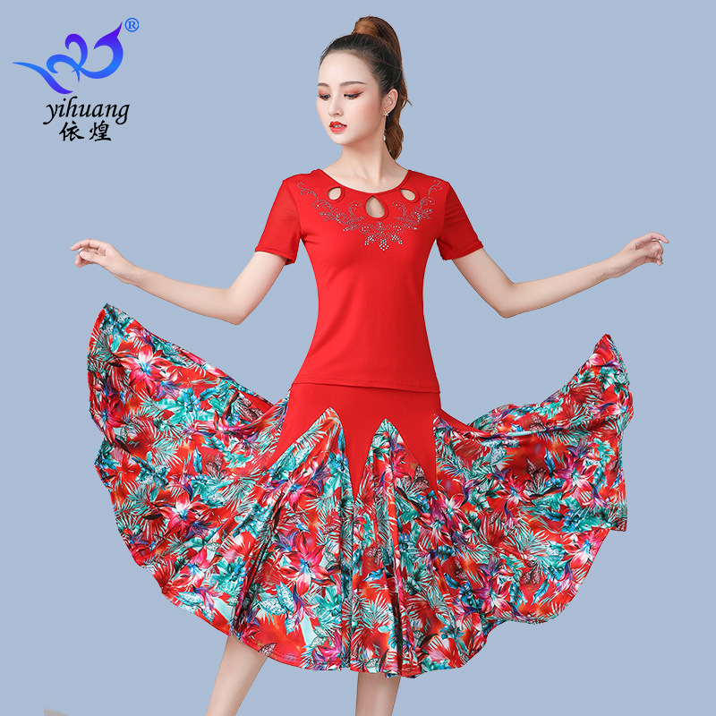 Pakaian dansa persegi, baru pakaian dansa rok ayun besar lengan pendek ukuran plus pakaian penampilan tari ballroom