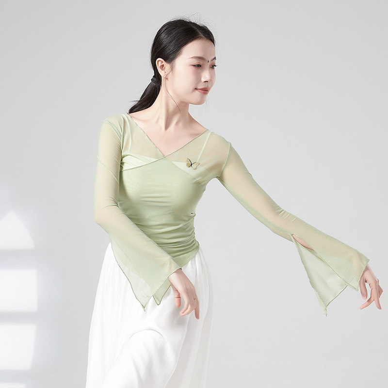 Pakaian Rhyme Tubuh Tari Klasik Pakaian Kasa Kupu-Kupu Pakaian Kelas Latihan Seni Pakaian Tari Etnis Tiongkok Atasan Wanita