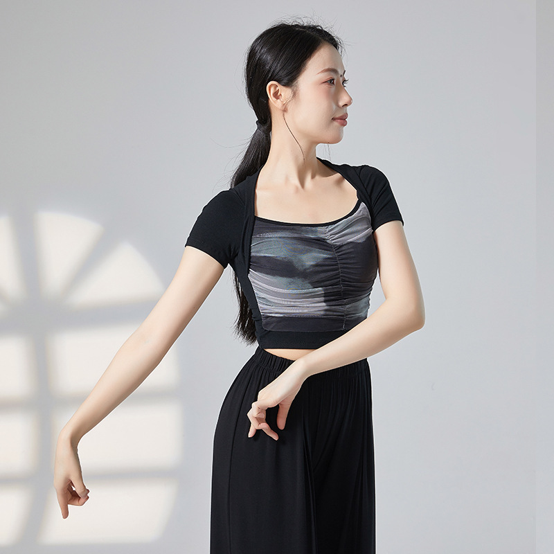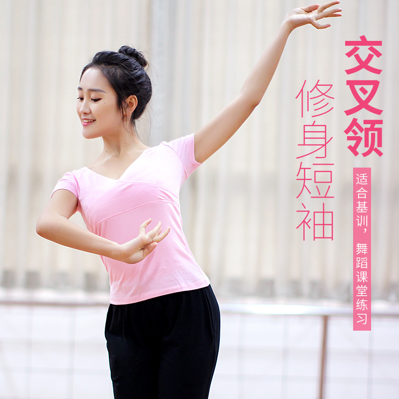 Pakaian latihan dansa klasik, pakaian latihan tubuh tari modern China leher bulat lengan pendek baru musim panas