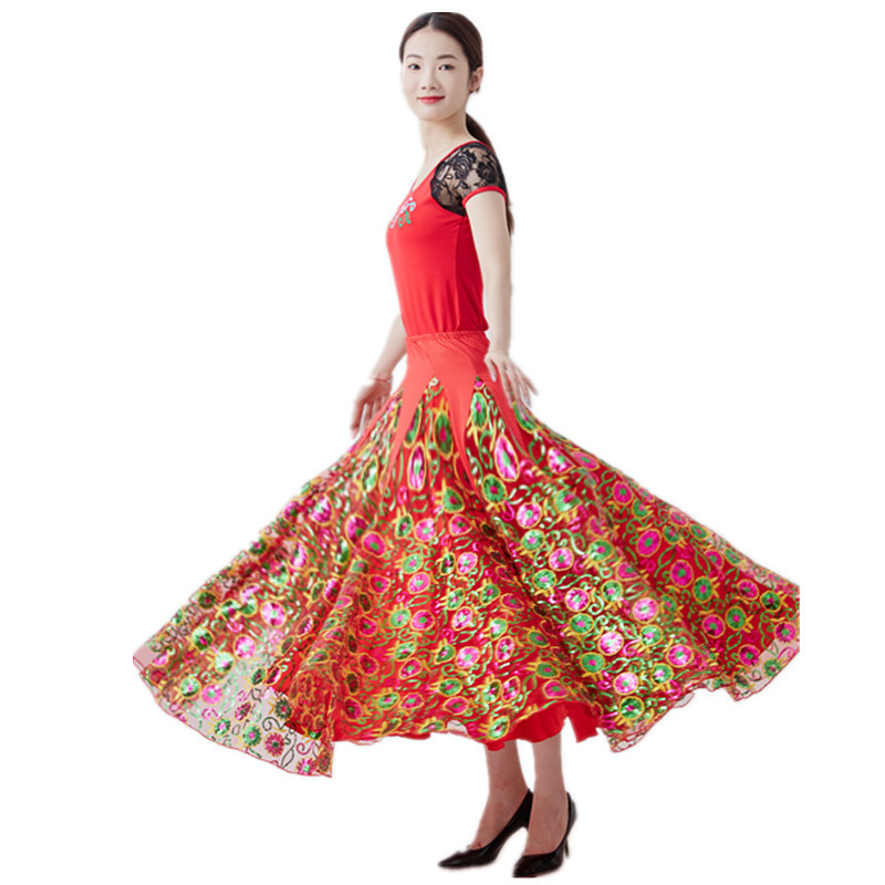 Pakaian Tari Lapangan Model Baru Rok Panjang Sedang Ayun Besar Rok Tari Tari Modern Rok Setengah Badan Latihan Internasional Tari Persahabatan Wanita