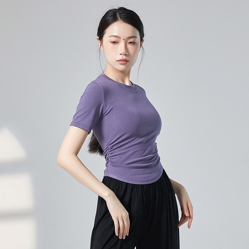 Pakaian Tari Modern T-Shirt Lengan Pendek Kerah U Lengkungan Model Pendek Gaya Murni Gaya Baru Atasan Wanita Pakaian Tari Klasik Pria Kecil