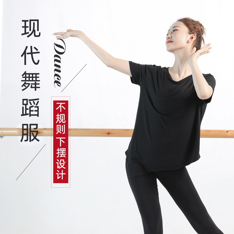 Baju dansa modern dewasa, pakaian atasan longgar lengan pendek, pakaian dansa leher bulat musim semi dan musim panas