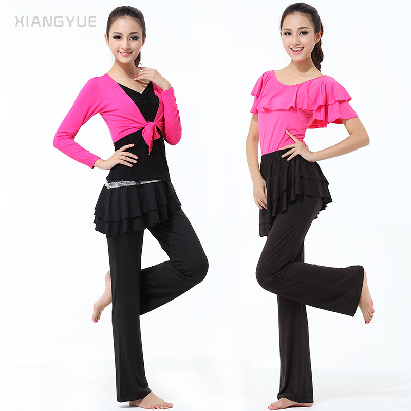 Pakaian Latihan Set Tari Latin Model Baru Pakaian Latihan Wanita Gaya Dewasa Elegan Kerah Bundar Tari Persahabatan Tari Modern
