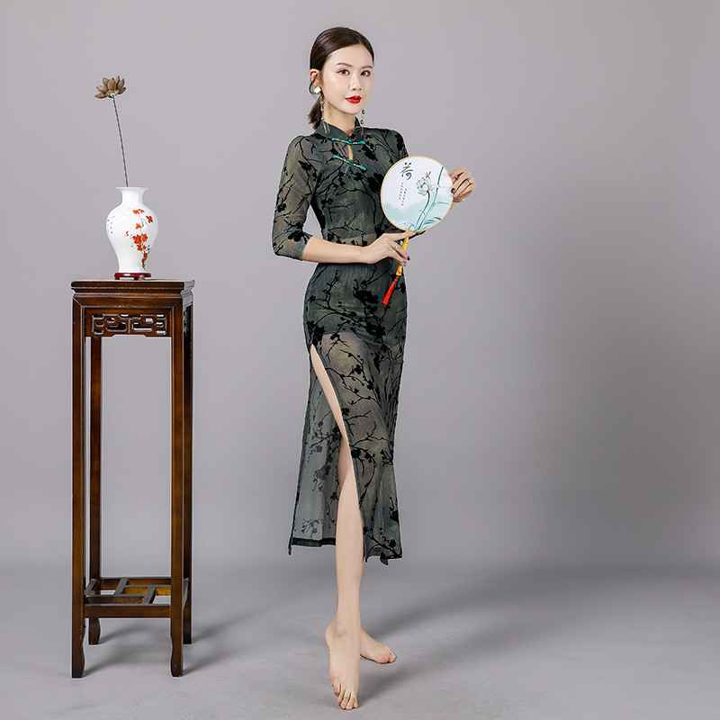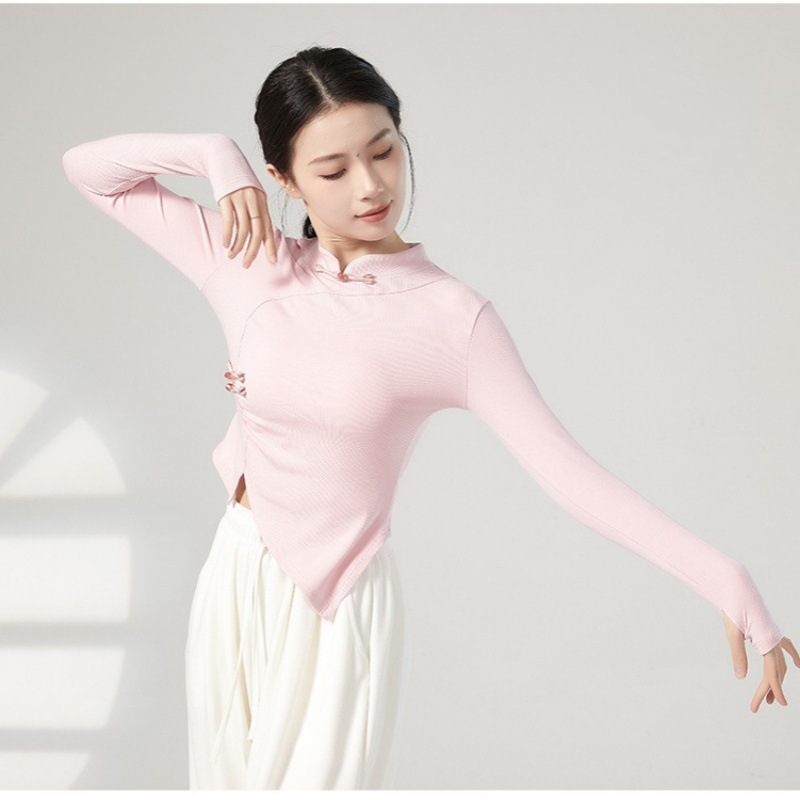 Baju dansa klasik cheongsam, baju latihan sehari-hari, pakaian fisik, latihan dansa, lengan panjang, baju jari peningkatan gaya China, baru untuk wanita
