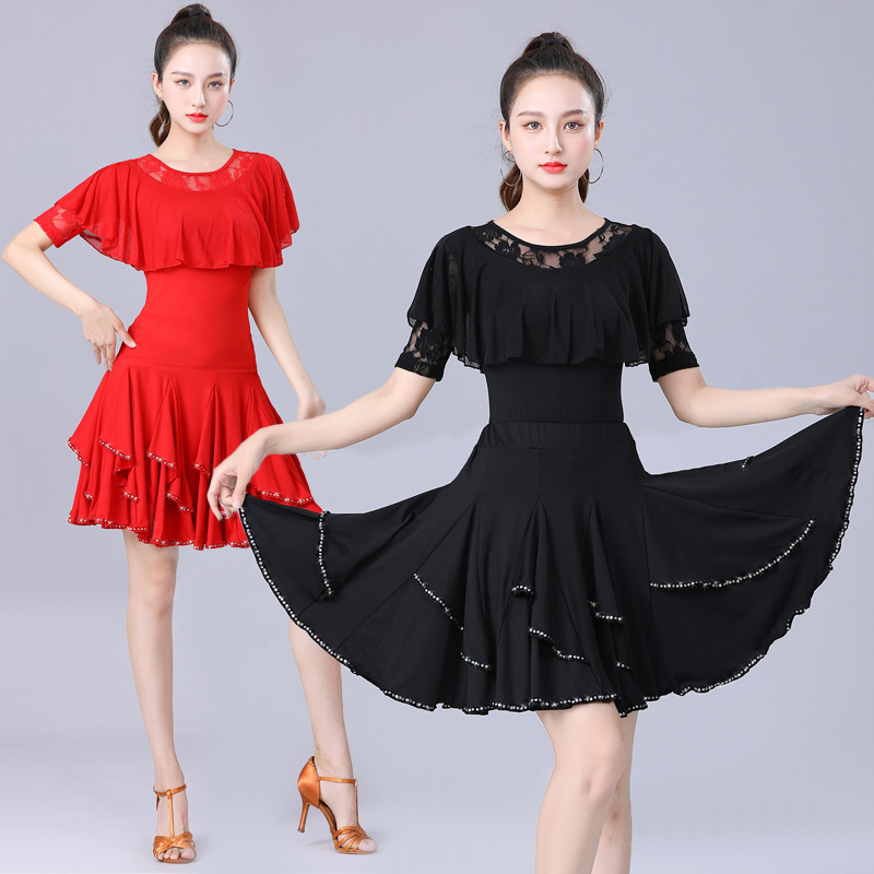 Pakaian dansa persegi, pakaian dansa Latin, pakaian latihan dansa dewasa baru, rok ayun besar, pakaian penampilan rumba
