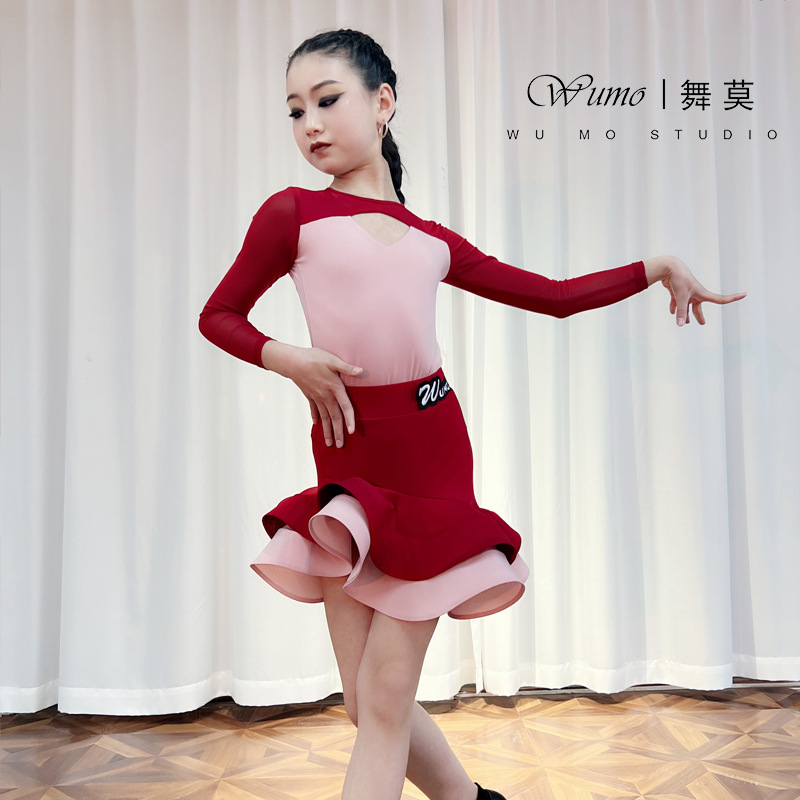 Pakaian latihan tari Latin anak-anak, pakaian tari anak-anak, atasan tari Cina anak perempuan lengan panjang dan pendek, set rok dan celana balet