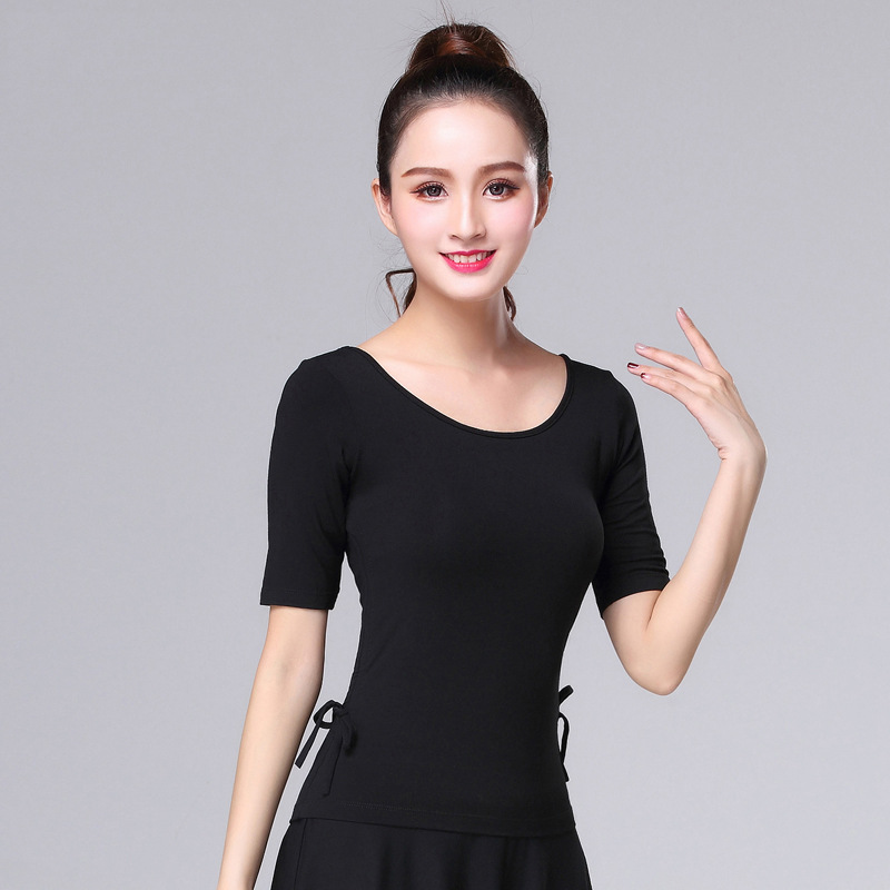Pakaian dansa Modern wanita, atasan lengan pendek tali serut slim-fit pakaian latihan modal pakaian latihan dansa klasik musim panas