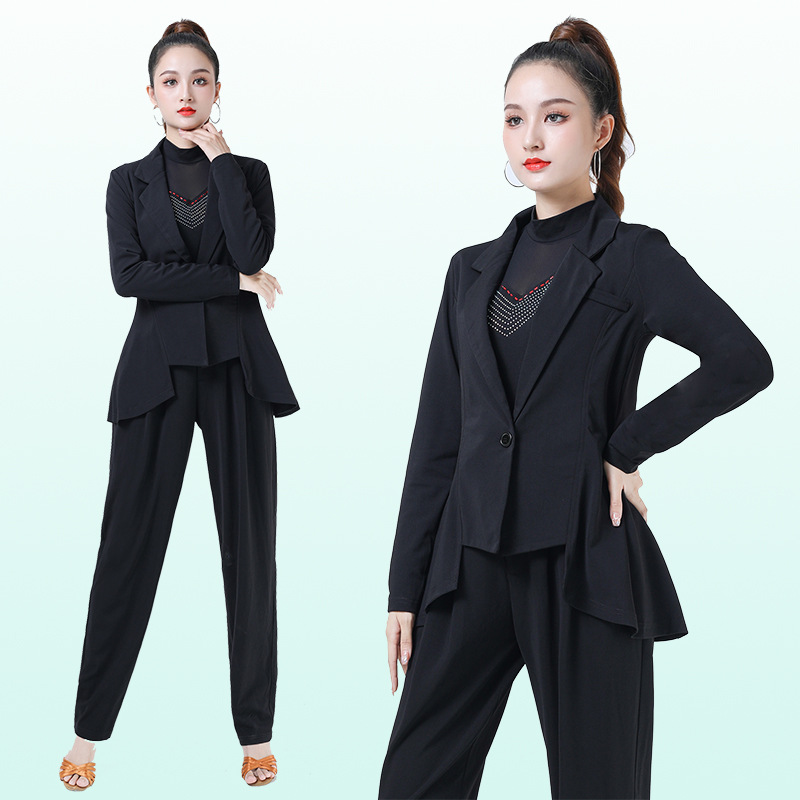 Pakaian dansa tanpa Bagian buah, jaket jas kecil hitam dansa Latin, setelan dansa pelaut gitba